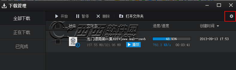 5、關于默認的下載目錄可以點擊軟件最上面的播放器一欄,然后選擇下載管理,在下載列表的右上角點擊設置進入下載設置界面進行默認下載目錄的設置。
