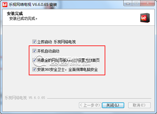 2、安裝完成后會(huì)有幾個(gè)選項(xiàng),這里都勾掉吧,修改你的主頁(yè)跟安裝360的,不需要就別勾了。