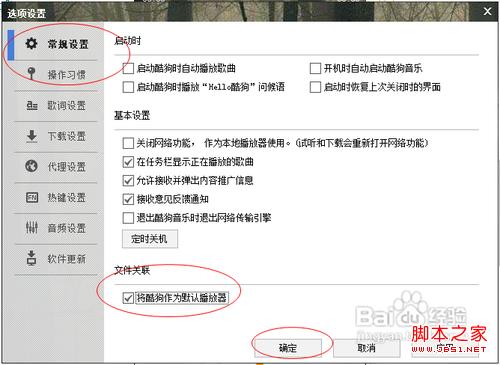 然后在常規(guī)選項(xiàng)卡中勾選使用酷狗瀏覽器作為默認(rèn)播放器的選項(xiàng),最后點(diǎn)擊確定按鈕即可,如圖所示: