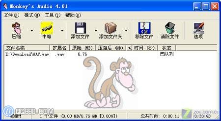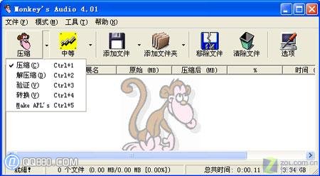 打開Monkey's Audio,我們可以看到軟件風(fēng)格相當(dāng)簡潔,而背景上的那只猴子更是平添許多趣味。