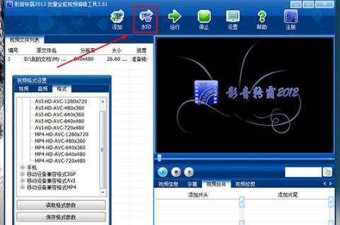 2、成功彈出視頻水印字幕處理的界面后,點擊左上方的“添加視頻文件”選項添加作為畫中畫的視頻,軟件支持大多數常見的視頻文件,用戶可以在一段視頻中添加重復的多段視頻,也可以添加不同的視頻,如下圖所示: