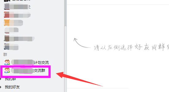 5、在新窗口中,左側列表中會顯示最近聯系的好友和QQ群,如果要發給朋友,可以點擊該好友,發給QQ群就點擊群,如圖我點擊了一個QQ群。