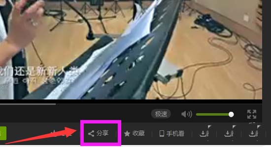 2、打開一個自己喜歡的視頻,在此視頻下方有分享按鈕,點擊“分享”。