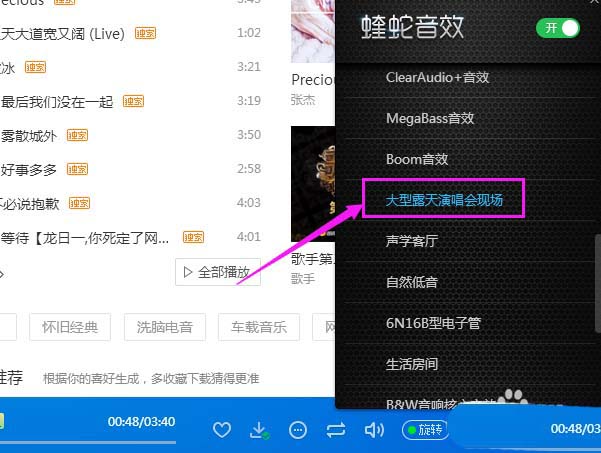 酷狗音樂中音效很多,想要使用大型露天演唱會(huì)現(xiàn)場(chǎng)音效,該怎么使用呢?下面我們就來看看詳細(xì)的教程。