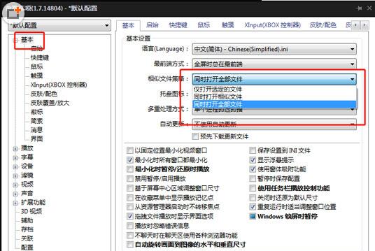 【同時打開相似文件】:在選定一個視頻播放的同時,視頻存放目錄中的其他跟該視頻格式相同或者名稱有關聯的視頻自動添加到視頻列表中播放