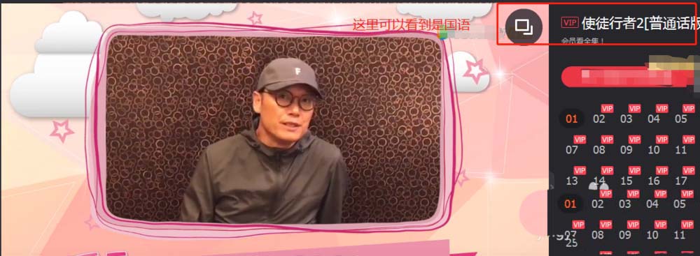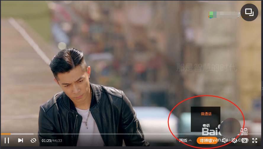 2、然后當電視劇開始播放以后,看到當前語言是普通話,然后鼠標放在普通話上面,就會出現橙色填充。