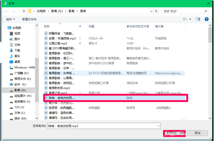 10、打開SD卡歌盤,我們就可以看到歌曲《老地方的雨》已儲存在SD卡歌盤中了。