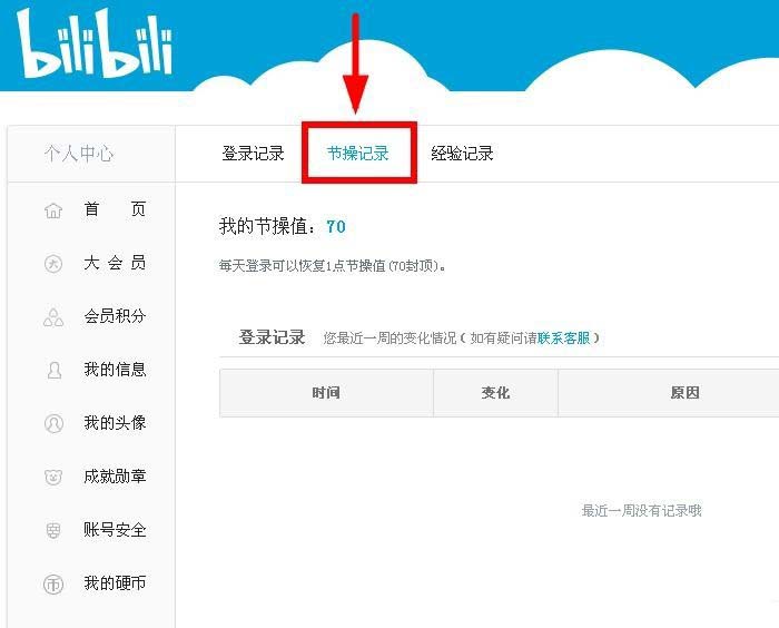 3、進(jìn)入個(gè)人中心界面,點(diǎn)擊查看節(jié)操記錄。
