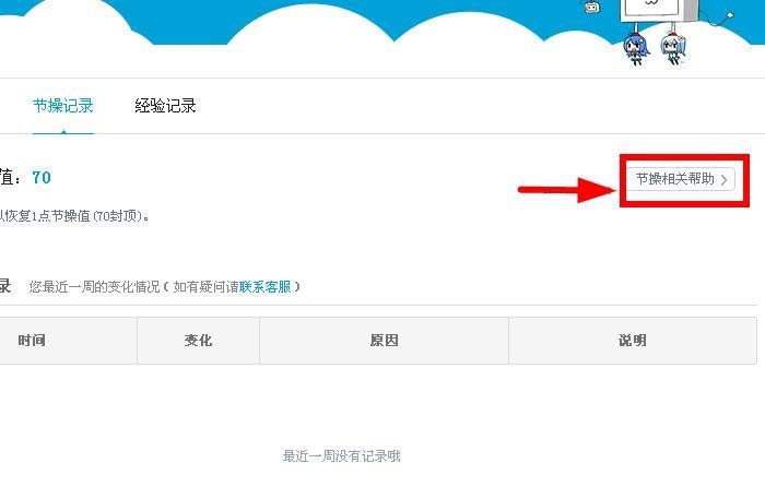 4、點(diǎn)擊個(gè)人中心界面右上角“節(jié)操相關(guān)幫助”,點(diǎn)擊進(jìn)入。