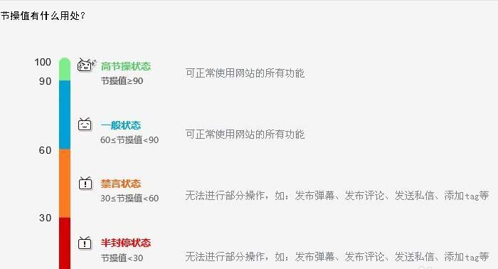 你在bilibili觀看視頻的不良行為會(huì)讓你的節(jié)操值降低,節(jié)操值過低會(huì)讓你無法使用一些常用的功能。