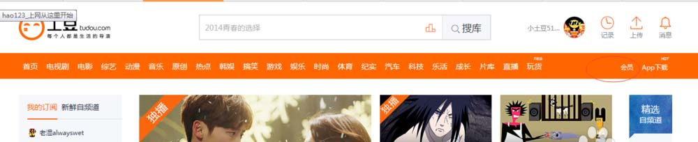 1、登錄您的土豆會員賬號,進入土豆首頁,點擊右上角的會員