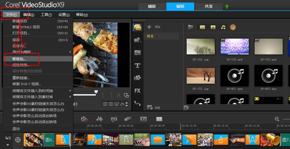 1、選擇菜單欄中的【文件】,再在下拉列表中選擇【智能包】