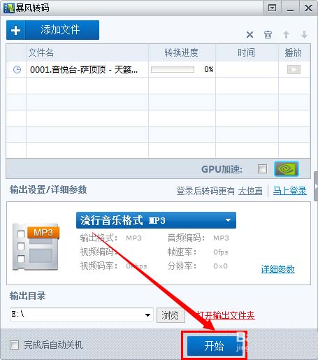 5、然后點(diǎn)擊“開始”便可以進(jìn)行轉(zhuǎn)換了。