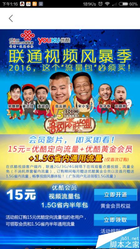 優酷在今年暑假推出了一個15元聯通套餐,即15元包(全省流量半年包1.5G+優酷30天定向流量+優酷會員30天),如果是原價的話需要六七十元。很多小伙伴都知道,但是很多人反映,定向流量不能用。那小編今天告訴大家最正確的步驟。