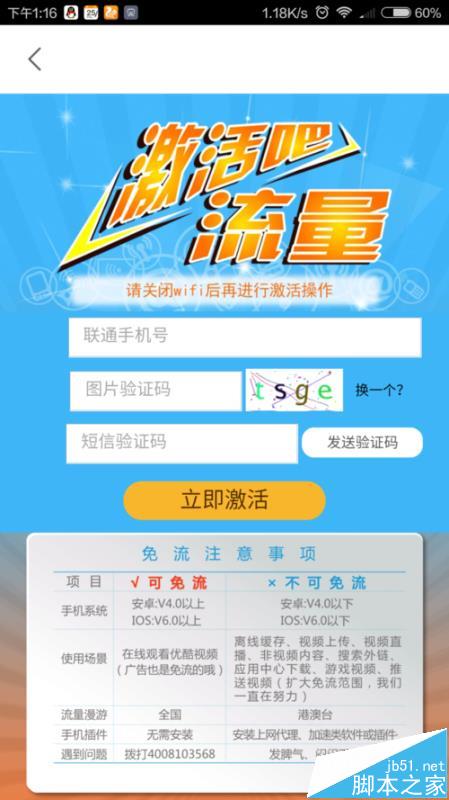 5、填上手機號驗證碼后,立即激活。然后就可以了,我們在看免流視頻時候,視頻右下角會有個-聯通包月-字樣。恭喜你成功了。
