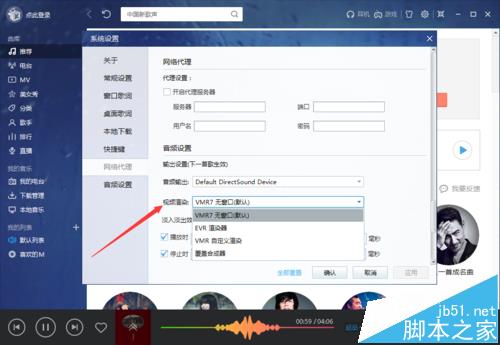 6、將“VMR7 無窗口(默認(rèn))”改為“覆蓋合成器”。