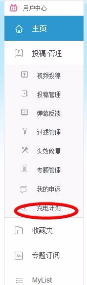 2、然后點擊側邊欄里的“充電計劃”