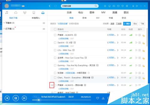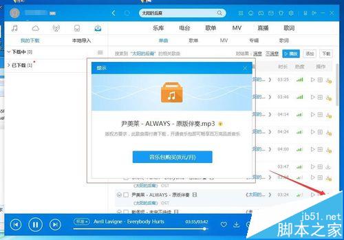 1、在酷狗音樂中,搜索自己想要下載的音樂,比如太陽的后裔中 ALways的原版伴奏。點擊下載按鈕,提示要交費才能下載。