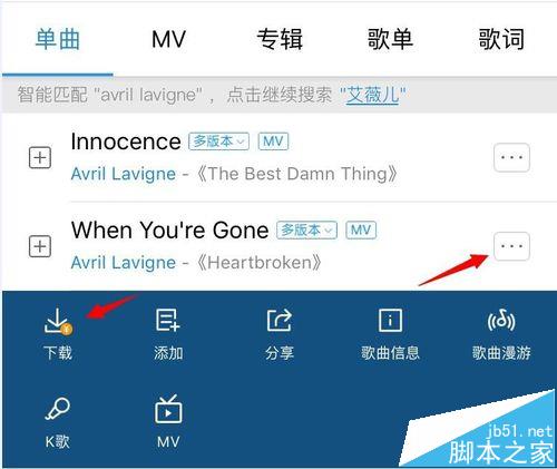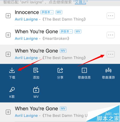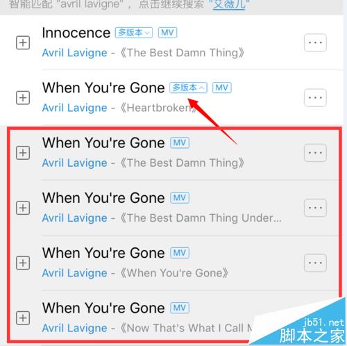 3、我們在點擊歌曲上方的“多版本”,在展開的菜單的歌曲中點擊“...”圖標,發現這個版本是免費下載的。