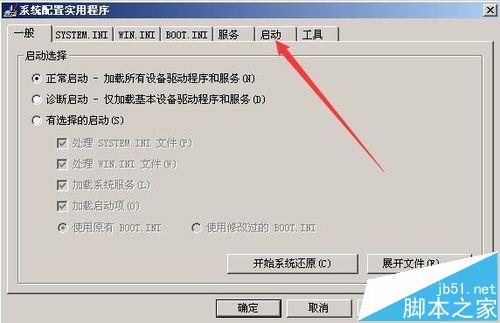 5、在打開的系統(tǒng)配置實用程序窗口中,點擊上面的“啟動”標簽