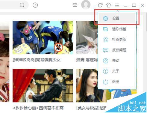 3、點擊菜單選項后,在彈出的選項框中點擊“設置”選項。如圖所示;