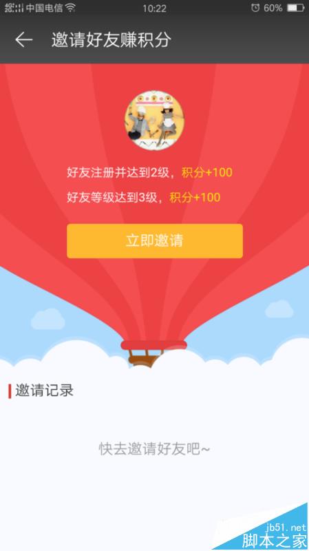 3、邀請好友賺積分。好友注冊并達到2級得100積分,好友等級達到3級加100積分。