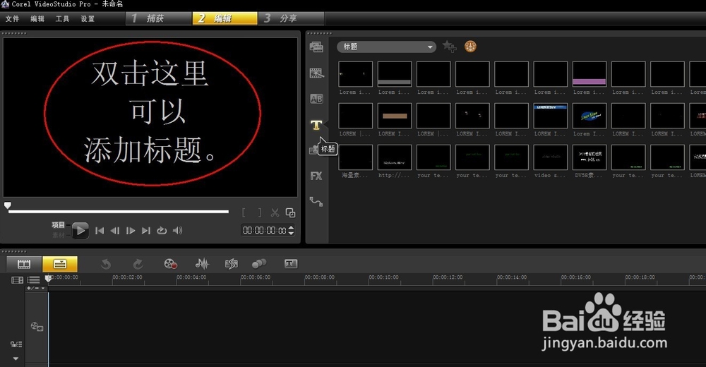 1、打開會聲會影,點擊屏幕上方T文字界面,如圖