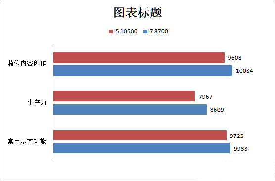 在PCMark 10測試中的三個小環節上,i5 10500的得分都稍落后于i7 8700,這個結果是意料中的,畢竟i7 8700的主頻要更高一點。