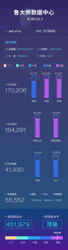 根據魯大師數據中心最新的數據顯示,搭載天璣1000 Plus的iQOO Z1魯大師綜合性能跑分451979分,基本上達到了驍龍865的水平,但與部份打磨到位的高端865旗艦動輒超過50萬的跑分相比,還是有一些差距。