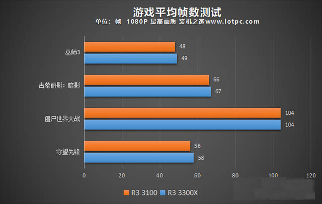 在游戲測試下,R3 3300X部分游戲要略有領先R3 3100,不過平均幀數差異并不是太大。