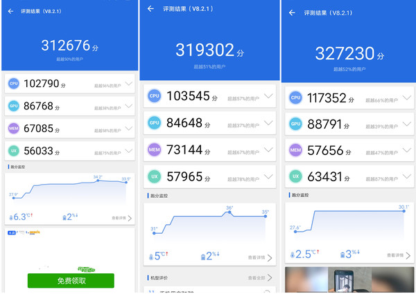 可以看到,這幾款手機發熱溫度都控制在了37.0°。玩大型的3D游戲,機身溫度能控制在跟人體溫度相差無幾,完全是一個友好的溫度。雖然游戲時間并不長,但也能從側面反映3顆芯片對發熱的控制均不錯。