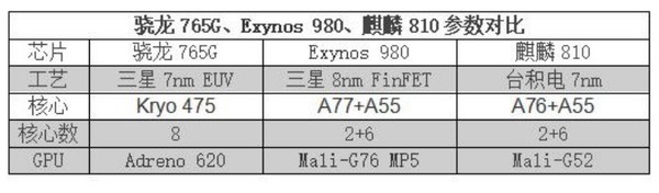 以上便是武林網小編為大家分享的"驍龍765G/Exynos 980比對麒麟810哪一款性能更強"的全部內容,希望能夠幫到你,武林網持續發布更多資訊,歡迎大家的關注。