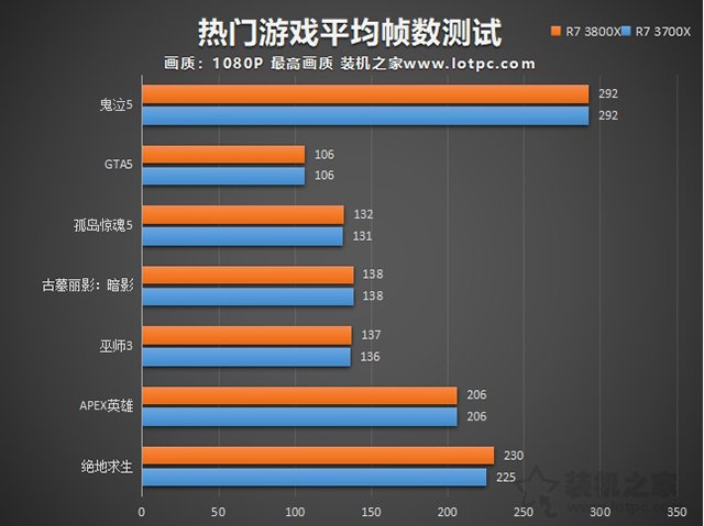 R7-3800X和R7-3700X在游戲測試中,差距基本不大,大多數游戲幀數基本相同,總的來說,R7-3800X優勢不大,兩者游戲差距極小。