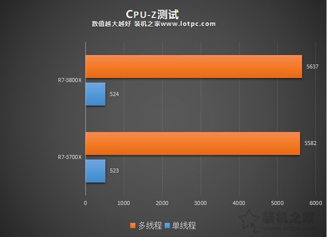 在CPU-Z測試中,R7-3800X相比3700X在單核性能基本相同,R7-3800X只占了1分的優勢,完全可以忽視,而多線程強了差距極小,只領先了1%左右。