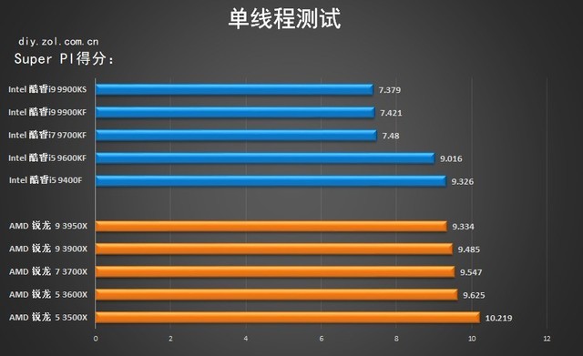 單核心性能一貫是英特爾處理器的強項,而Super PI測試很好的體現了這一點,成績表示的是秒,數值越小處理器單核性能越強,九代酷睿高端酷睿i7以上的型號都在7秒左右,而酷睿i5也在9秒左右。