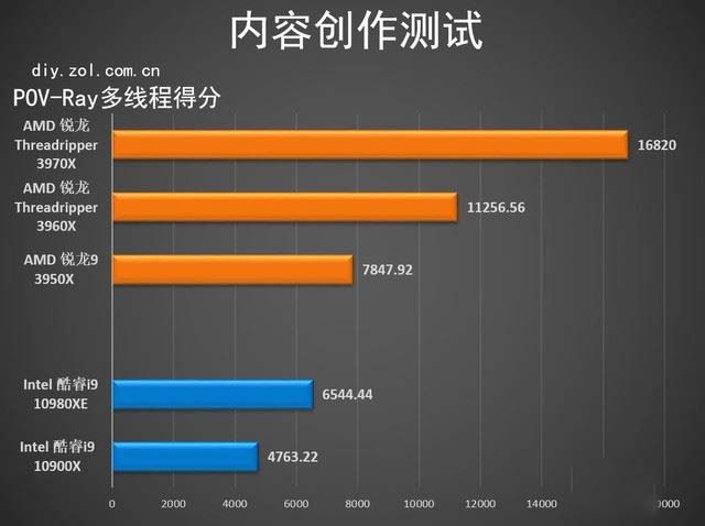 POV-Ray測(cè)試?yán)镏蠥MD 銳龍Threadripper3970X就能很好的發(fā)揮出能力了,多核心對(duì)這些測(cè)試很有優(yōu)勢(shì),但也需要單核心頻率的支撐。