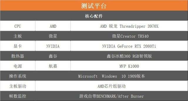 為保證此次評(píng)測(cè)能夠發(fā)揮最佳性能,本次測(cè)試平臺(tái)采用微星Creator TRX40主板、NVIDIA GeForce RTX 2080Ti顯卡、航嘉 MVP K1000電源、4根DDR4內(nèi)存組4通道,以及鑫谷冰酷360 RGB智領(lǐng)版水冷散熱器。