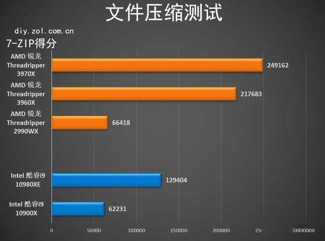 文件壓縮能力同樣是對(duì)CPU多線程的一種應(yīng)用,一般情況下壓縮和解壓縮操作都可以將CPU的全部線程都調(diào)用起來,能反應(yīng)處理器的全面性能。