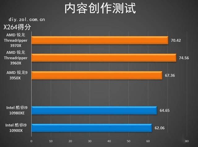 X265和X264的測(cè)試中AMD 銳龍Threadripper3970X的成績(jī)不如AMD 銳龍Threadripper3960X,因?yàn)檫@兩項(xiàng)測(cè)試?yán)顰MD 銳龍Threadripper3970X的核心利用率不高,很多核心均未滿載。
