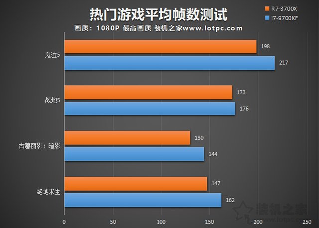 從游戲測試環(huán)節(jié),這好像一直是intel的優(yōu)勢所在,i7-9700KF在游戲測試表現(xiàn)相比R7-3700X更好。
