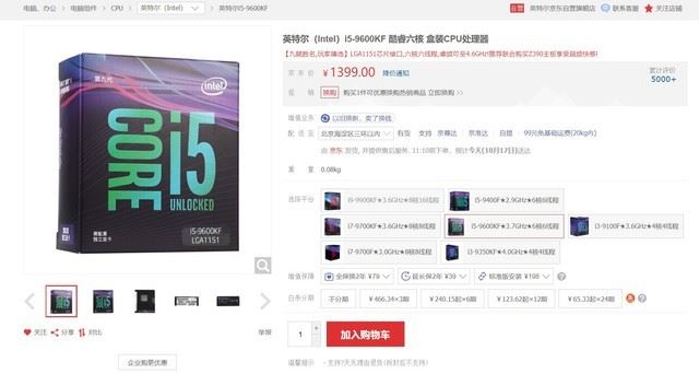 能看出來這兩款處理器處于不對等的地位上,AMD銳龍7 3800X的8核心16線程遠(yuǎn)高于i5-9600KF的6核心6線程,而且i5-9600KF的京東電商售價(jià)1399元,AMD銳龍7 3800X售價(jià)2699元,價(jià)格相差了近一倍。