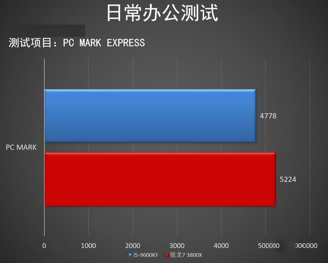 在PC MARKEXPRESS的測試中AMD銳龍 7 3800X毫無疑問更具優(yōu)勢,畢竟有著8核心16線程,而我們看到6核心6線程的i5-9600KF依靠高頻率在這項(xiàng)測試中也與AMD銳龍 7 3800X差距不大,看來除了游戲方面的優(yōu)勢,日常辦公應(yīng)用使用i5-9600KF也綽綽有余。