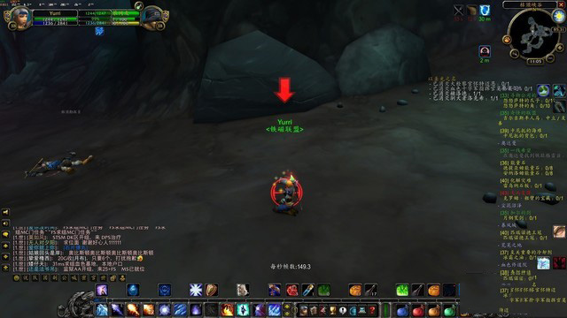 跑到尸體處復活,有BL獵人已經給我上了印記,不過貌似怕引起不必要的麻煩,他并沒有對正在吃喝的我動手。可以看到此刻游戲的幀數為149.3幀,魔獸世界的幀數開啟鍵為CTRL+R,而我們也是用Afterburner對幀數一起進行監控,幀數顯示在右上角。