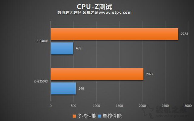 再來看一下CPU-Z測試一下兩者單線程和多線程性能差距,i3-9350KF相比i5-9400F在單線程性能領(lǐng)先了10%左右,而i5-9400F相比i3-9350KF在多線程性能方面領(lǐng)先了約27%。
