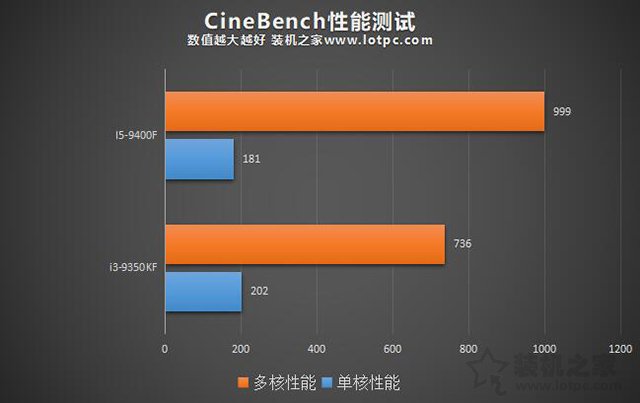 在Cinebench R15的測試成績中,i5-9400F單線程成績獲得了181分,而i3-9350KF單線程成績獲得了202分,i3-9350KF單核性能強了10%。而在多線程測試中,i5-9400F成績?yōu)?99分,而i3-9350KF成績?yōu)?36分,i5-9400F多核性能領(lǐng)先了26%左右。