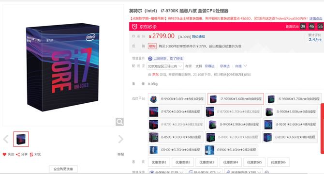與此同時,我們再對英特爾酷睿i7-9700K做了同步測試,酷睿i7-9700K采用8核心8線程設計,基礎頻率3.6GHz、最大單核睿頻4.9GHz、12MB緩存,目前京東自營零售價2799元,是目前高端處理器市場中的明星型號。銳龍5 3600X作為指導價不到2000元的產品,與其進行跨級對戰的結果又會是如何?讓我們接著往下看。