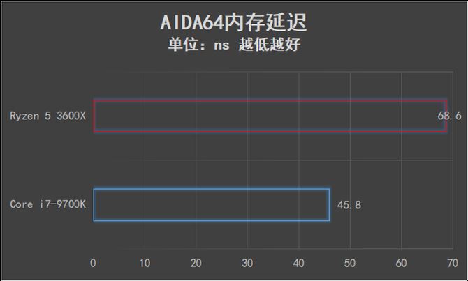 內存延遲方面,銳龍5 3600X為68.6ns,和二代銳龍處理器相當。但鑒于銳龍5 3600X內置了32MB超大緩存作為彌補,所以內存延遲對游戲的影響有所降低。