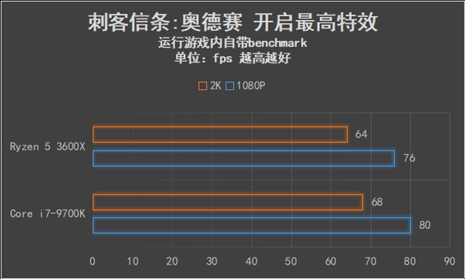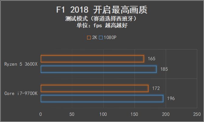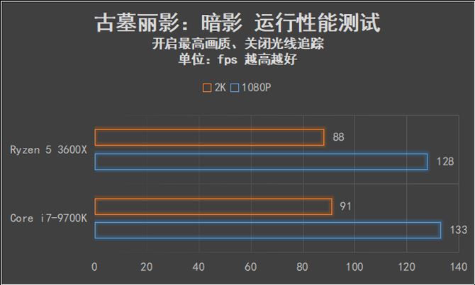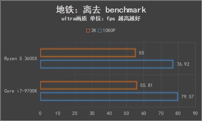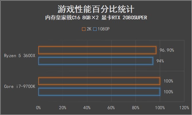 總結一下,如果以酷睿i7-9700K為標準,在1080P分辨率下,銳龍5 3600X的游戲性能可以達到酷睿i7-9700K的94%左右;而到了2K分辨率下,由于顯卡的負載壓力更大,CPU對游戲幀數的影響相對減少,所以銳龍5 3600X可以體驗到接近酷睿i7-9700K 97%的游戲性能。