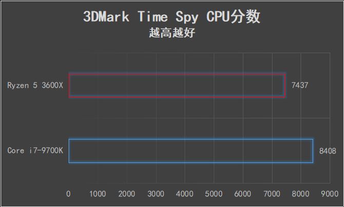 到了DX12的TimeSpy場景,酷睿i7-9700K的物理分數反超了銳龍5 3600X。