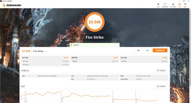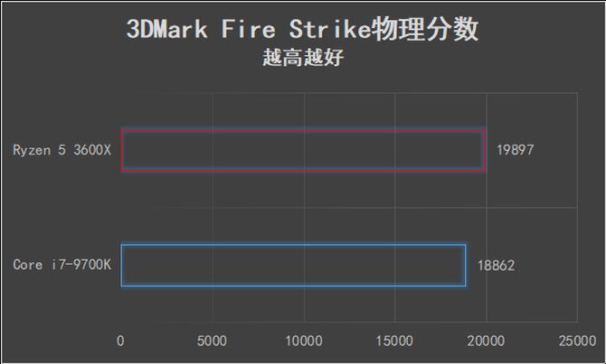 Fire Strike場景反應DX11的游戲性能,銳龍5 3600X成績為19897分,相對酷睿i7-9700K還要高一些。